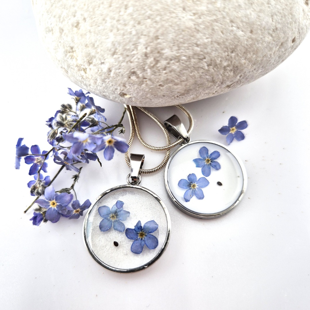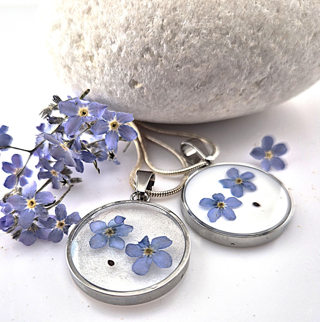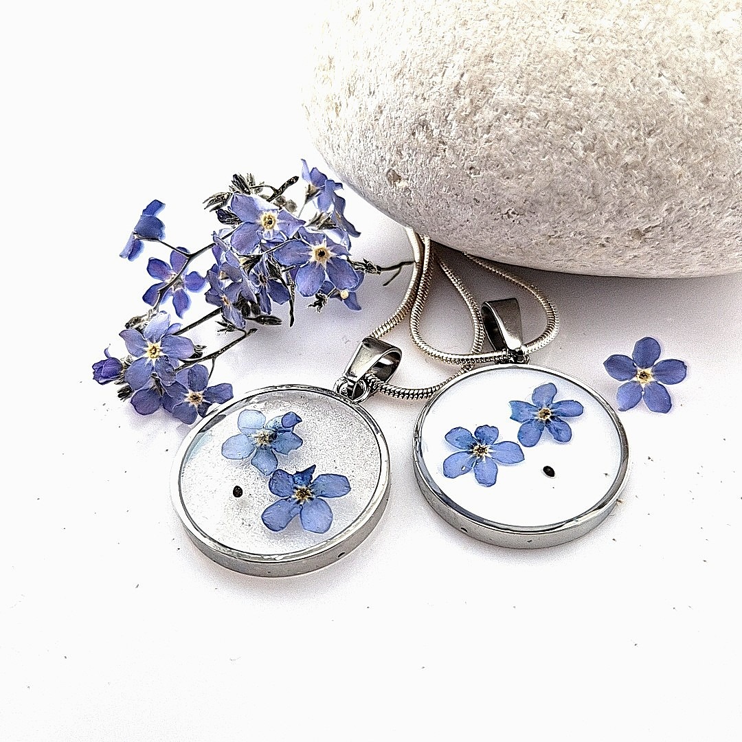 Vergeet mij nietjes hanger is rond 22 mm en u heeft de keuze uit 2 hangers.