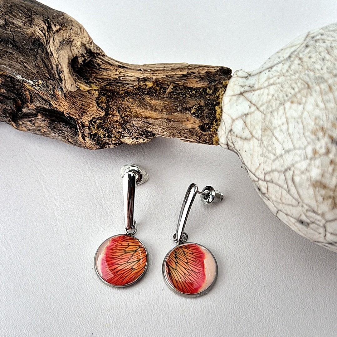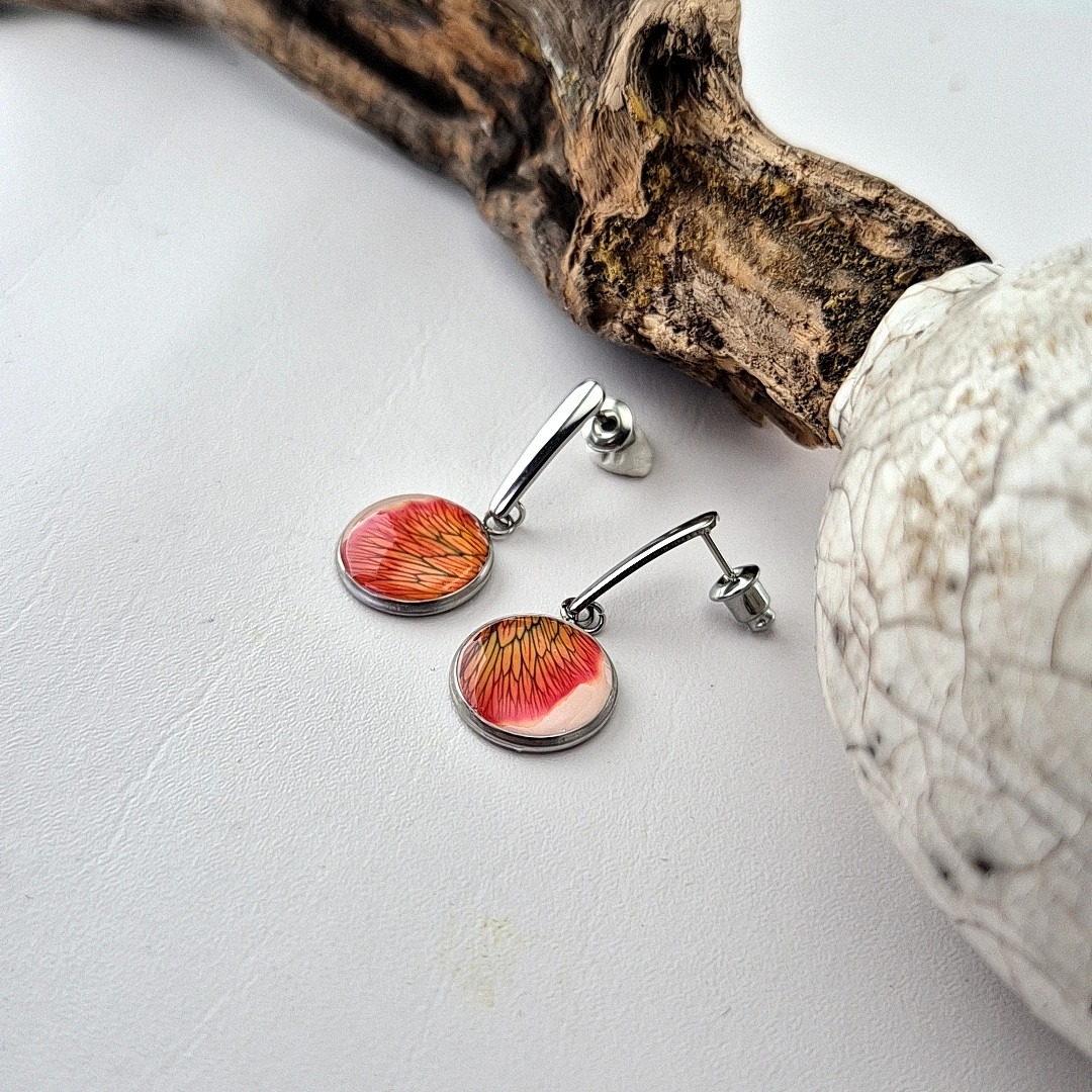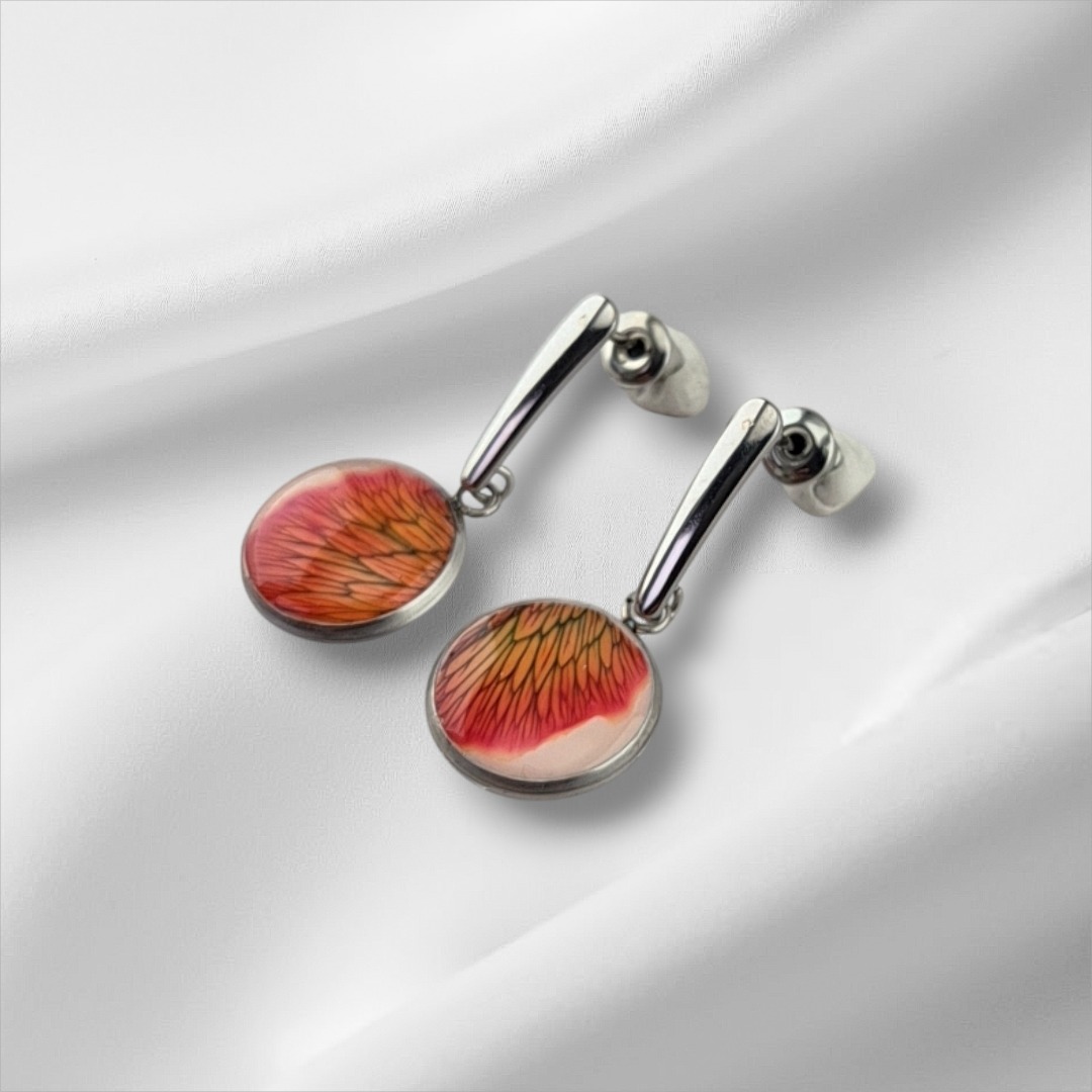 Deze handgemaakte Dianthus rode hang oorbellen met pin. Een met zorg gedroogd en gekleurd anjerbloemblad , vangen de verfijning van de natuur in een klein, draagbaar kunstwerk. Elk stukje bloemblad toont een unieke schakering van paars, met subtiele nerven die als miniatuur penseelstreken door het blad lopen. Door het blad op een witte epoxy-ondergrond te plaatsen, komen de kleuren helder en levendig naar voren, alsof het bloemblaadje net geplukt is.