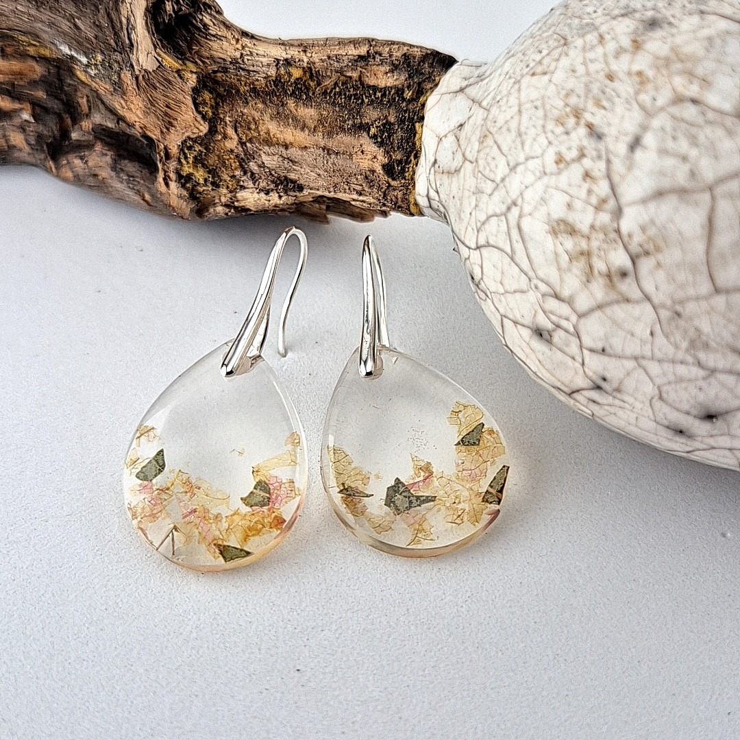 Geef deze Druppel oorbellen met bloemen snippers in epoxy cadeau aan u vriendin, partner of zus of.... Als leuk cadeau voor u zelf natuurlijk ♥