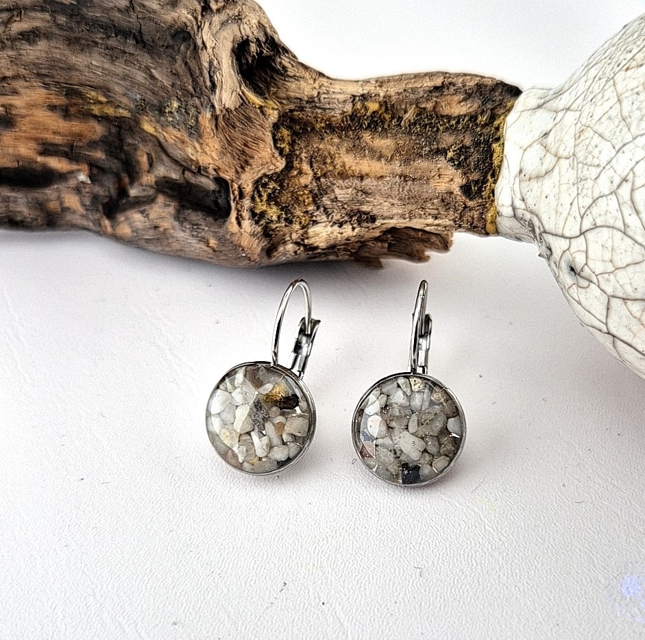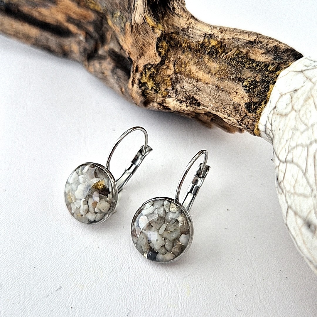 Deze unieke RVS epoxy oorbellen met wit en grijs grof zand dragen een stukje vakantieherinnering met zich mee. In het hart van elke oorbel ligt echt zand dat ik zelf heb verzameld op de indrukwekkende rotskusten van de Algarve in Portugal. Het warme, natuurlijke zand vormt een subtiel en authentiek decor dat de oorbellen een rustige, aardse uitstraling geeft.