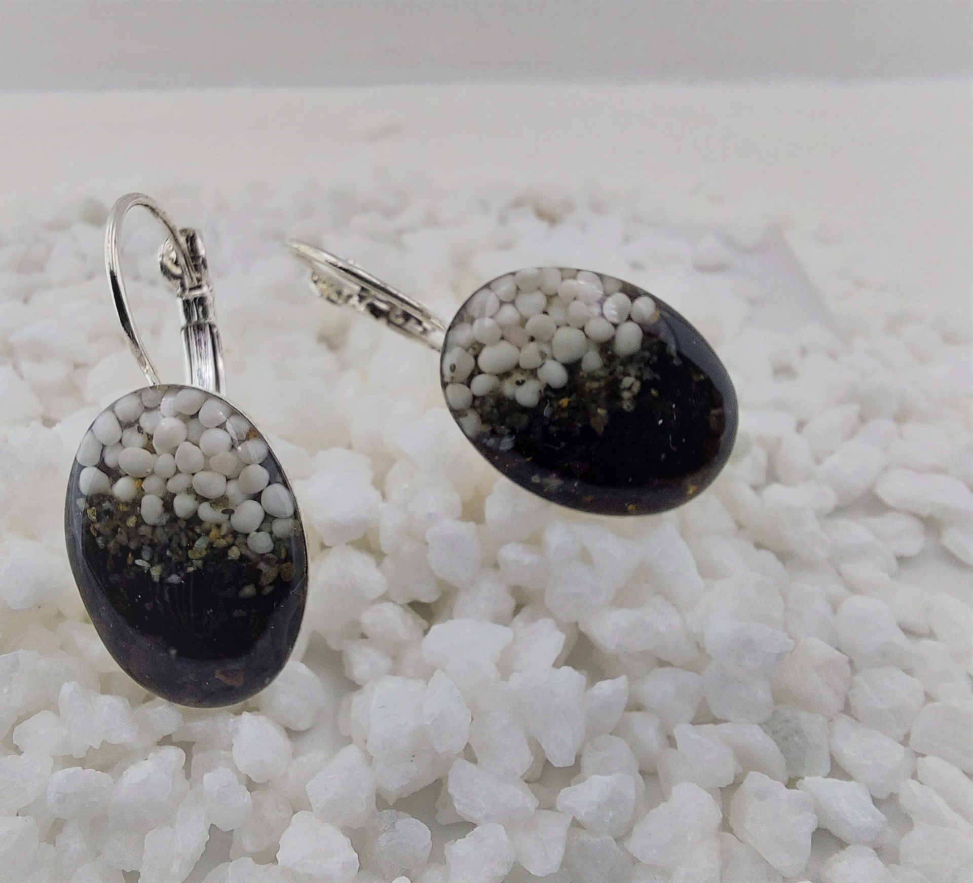 Geef deze Ovale zilver plated oorbellen zwart wit cadeau aan u vriendin, partner of zus of.... als leuk cadeau voor u zelf natuurlijk ♥