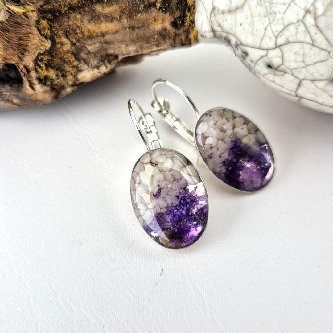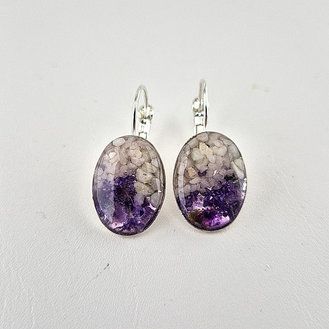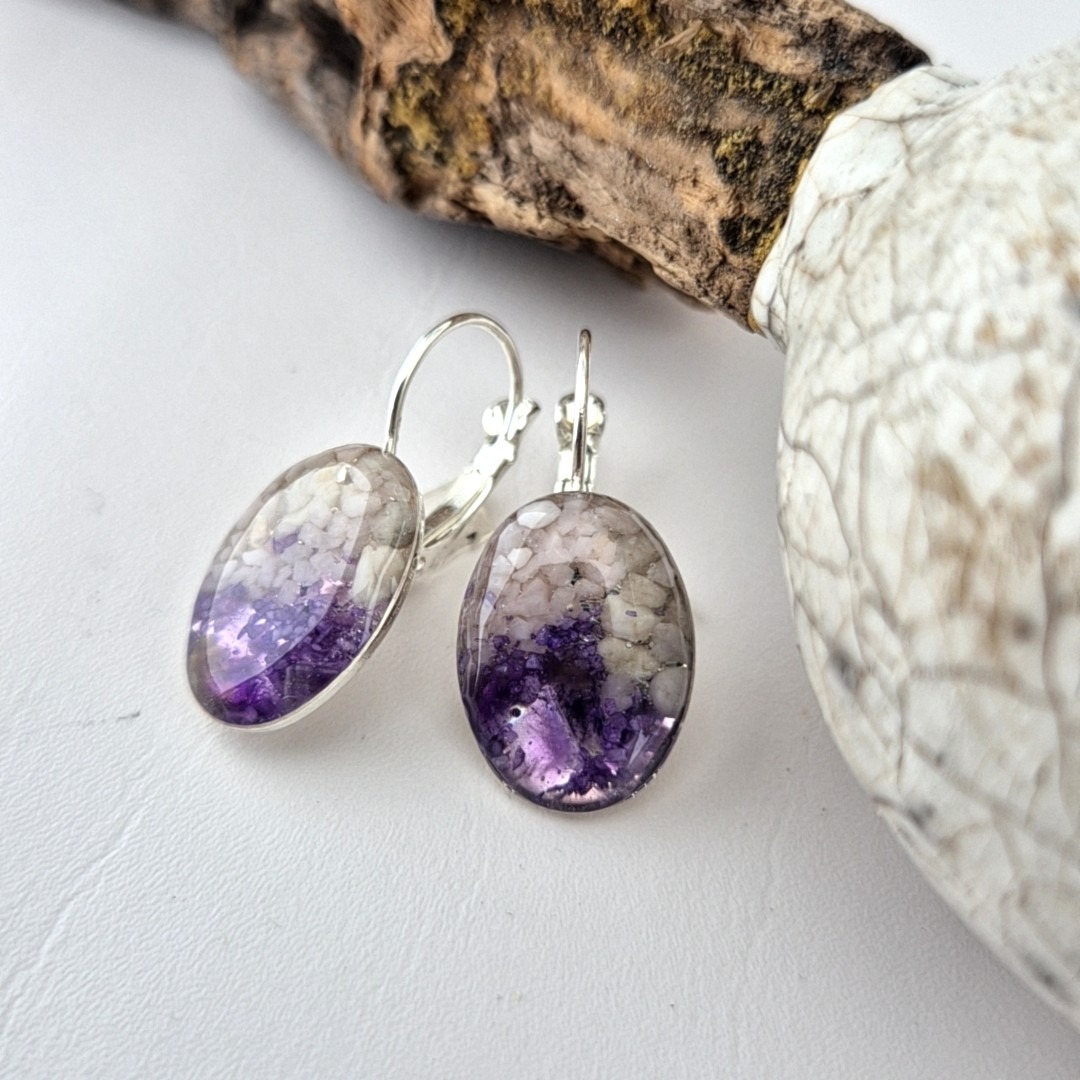 In deze oorbellen met Rozenkwarts - Amethist - zand komen drie elementen samen die elk hun eigen verhaal fluisteren: het zachte zand, de paarse glans van Amethist en de heldere diepte van epoxyhars. Samen vormen ze een klein kunstwerk dat de rust van de natuur en de kracht van innerlijke helderheid met zich meedraagt.