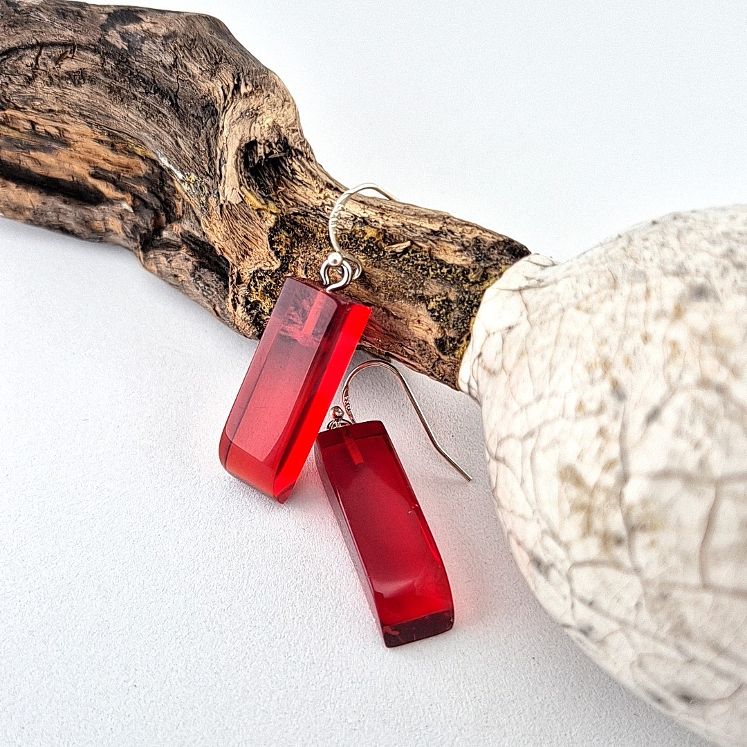 Het resultaat is een paar schitterende, unieke rode transparante oorbellen